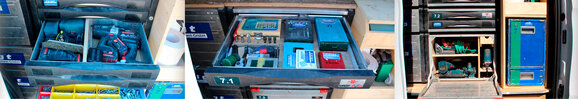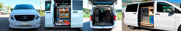 Alle unsere Mercedes-Benz Montagefahrzeuge sind identisch und komplett mit Profi-Werkzeug ausgestattet. Der Monteur verfügt über alles, um Ihnen eine qualitativ hochstehende Arbeit abzuliefern.